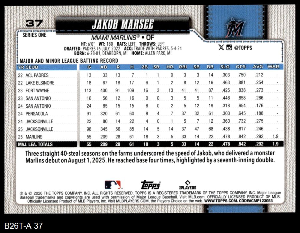 2026 Topps #37 Jakob Marsee