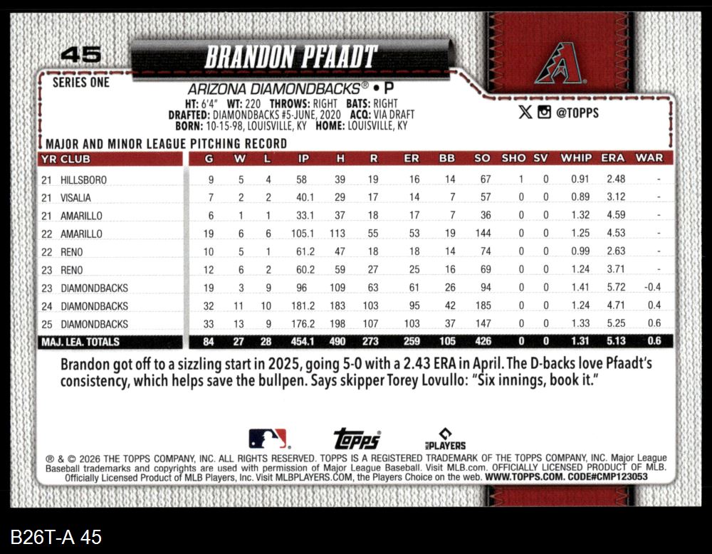 2026 Topps #45 Brandon Pfaadt