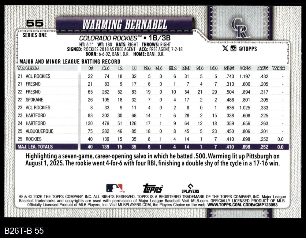 2026 Topps #55 Warming Bernabel
