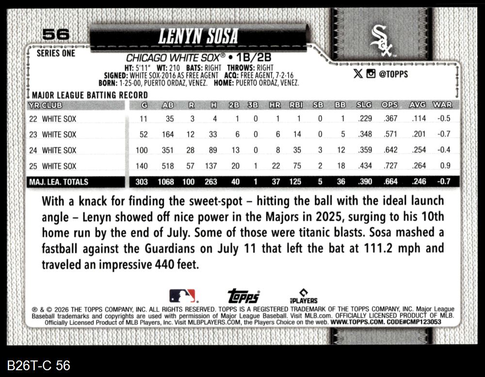2026 Topps #56 Lenyn Sosa