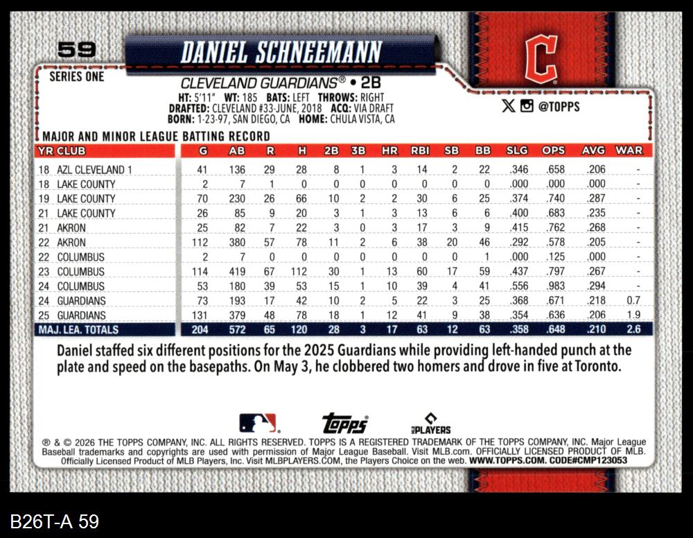 2026 Topps #59 Daniel Schneemann 8 - NM/MT