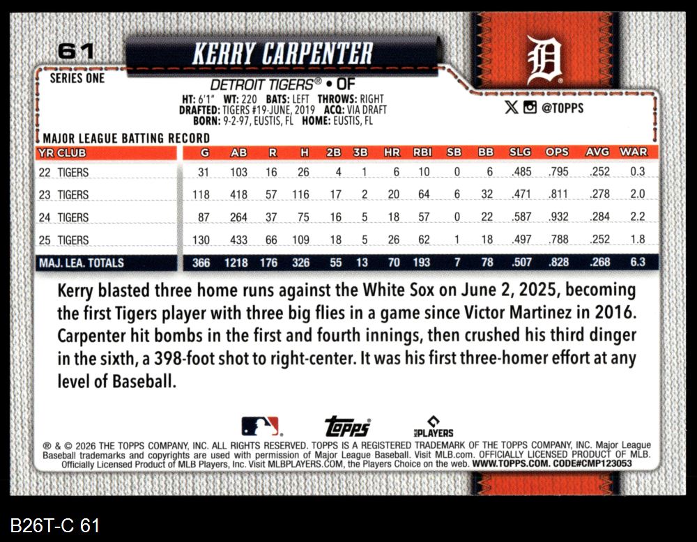 2026 Topps #61 Kerry Carpenter