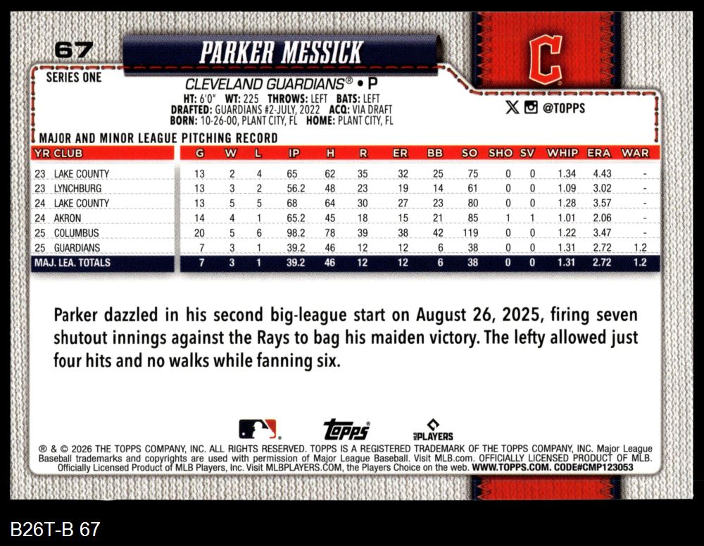 2026 Topps #67 Parker Messick