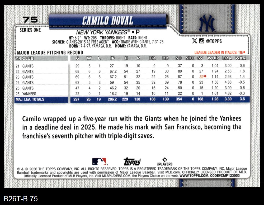 2026 Topps #75 Camilo Doval