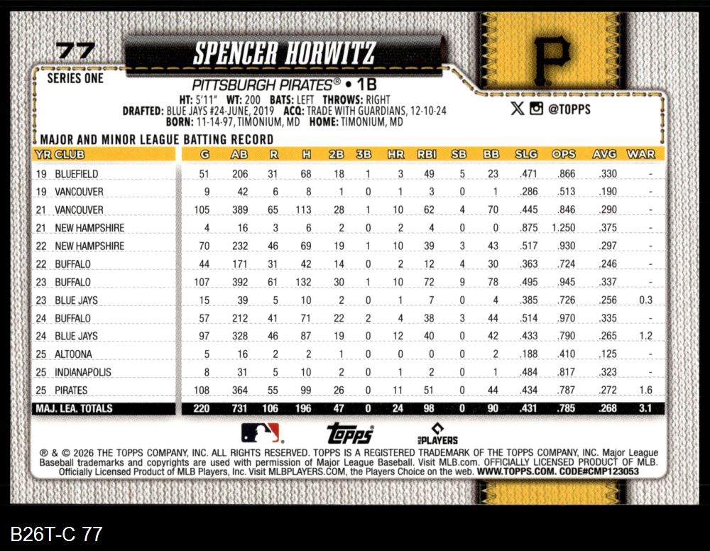 2026 Topps #77 Spencer Horwitz 8 - NM/MT