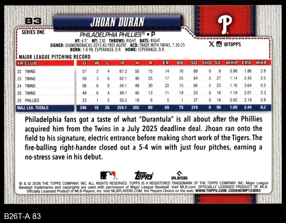 2026 Topps #83 Jhoan Duran 8 - NM/MT