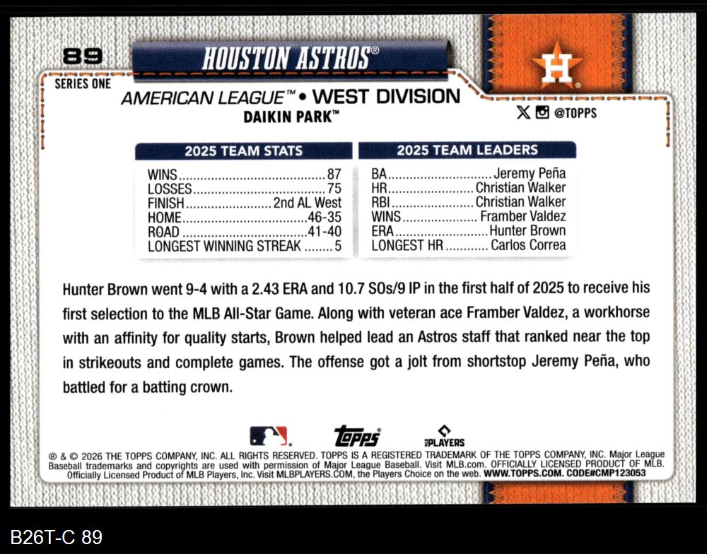 2026 Topps #89 Houston Astros Team