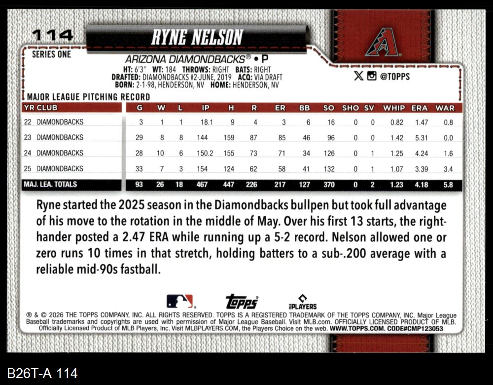 2026 Topps #114 Ryne Nelson 8 - NM/MT