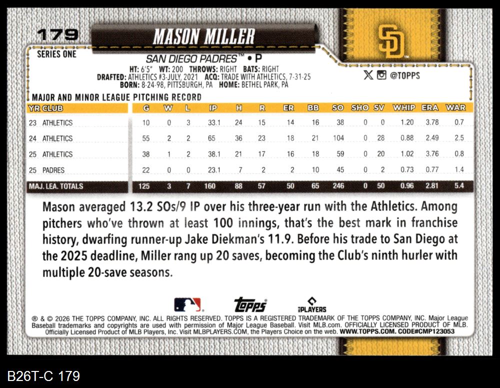 2026 Topps #179 Mason Miller