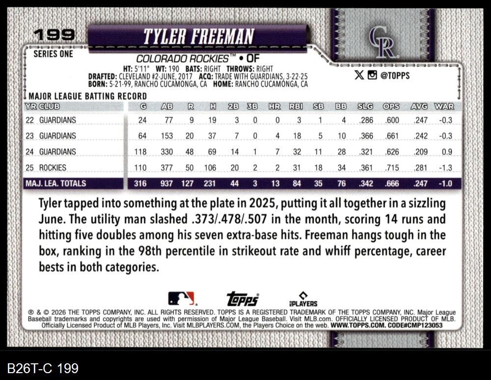 2026 Topps #199 Tyler Freeman 8 - NM/MT