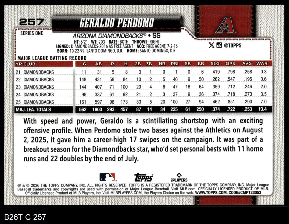 2026 Topps #257 Geraldo Perdomo