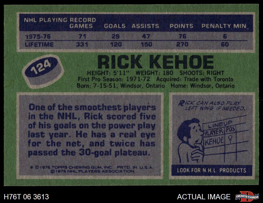 1976 Topps #124 Rick Kehoe