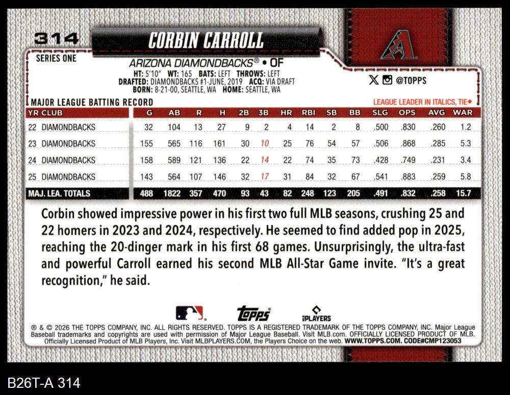 2026 Topps #314 Corbin Carroll