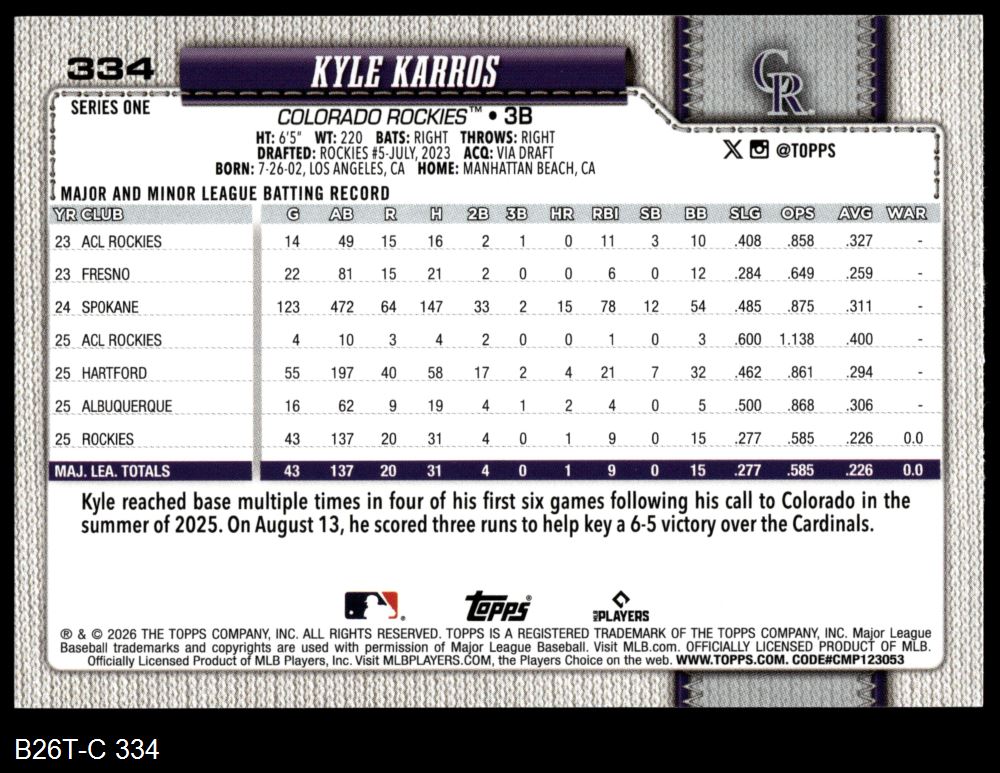 2026 Topps #334 Kyle Karros