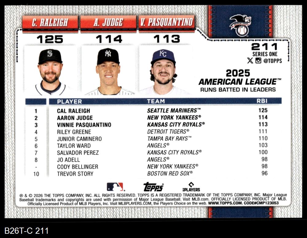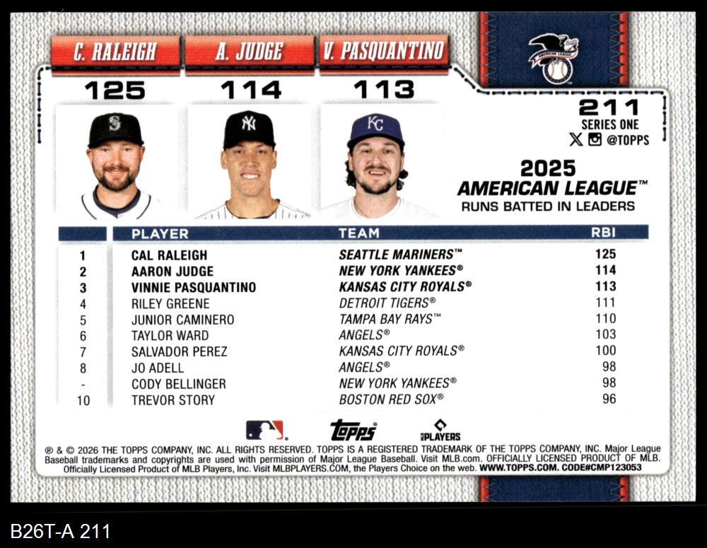 2026 Topps #211 AL RBI Leaders