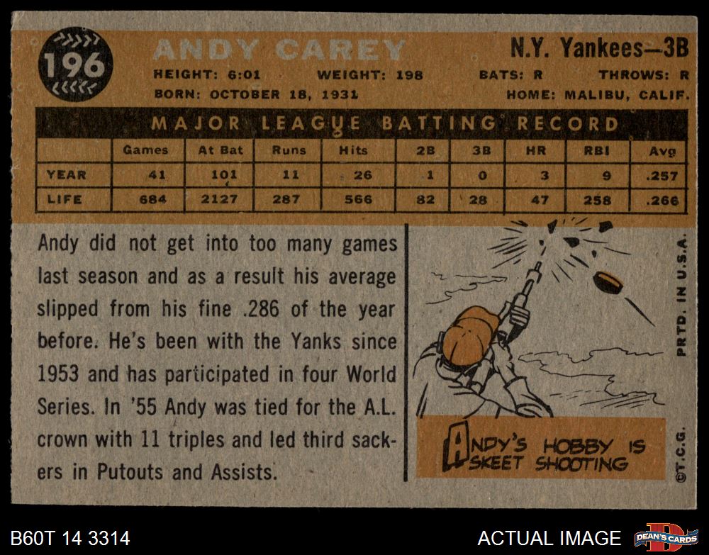 1960 Topps #196 Andy Carey 5 - EX
