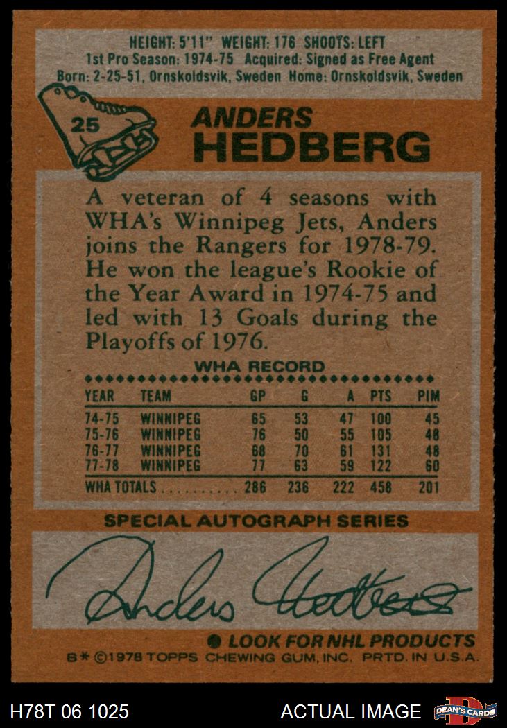 1978 Topps #25 Anders Hedberg 8 - NM/MT