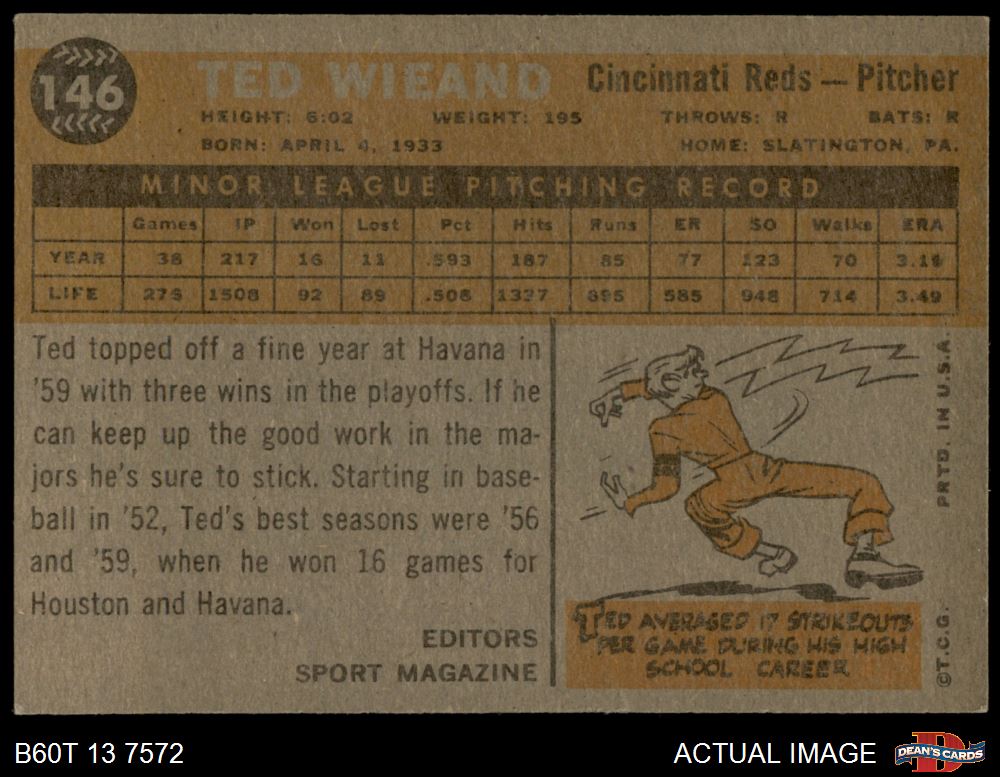 1960 Topps #146 - Ted Wieand Rookie Star 4 - VG/EX