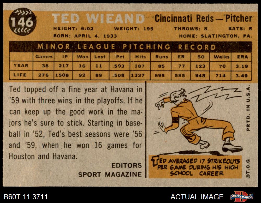 1960 Topps #146 - Ted Wieand Rookie Star 7.5 - NM+