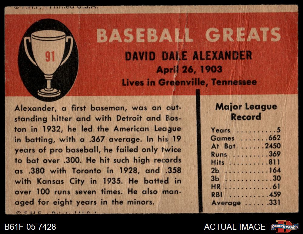 1961 Fleer #91 Dale Alexander 1 - POOR