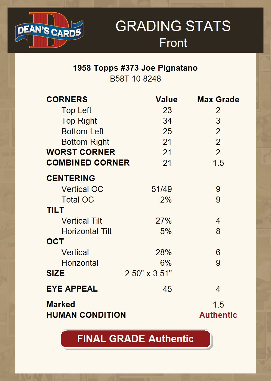 1958 Topps #373 Joe Pignatano AUTHENTIC