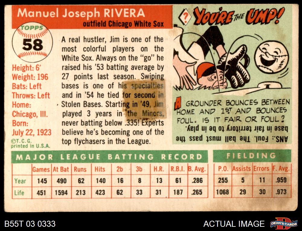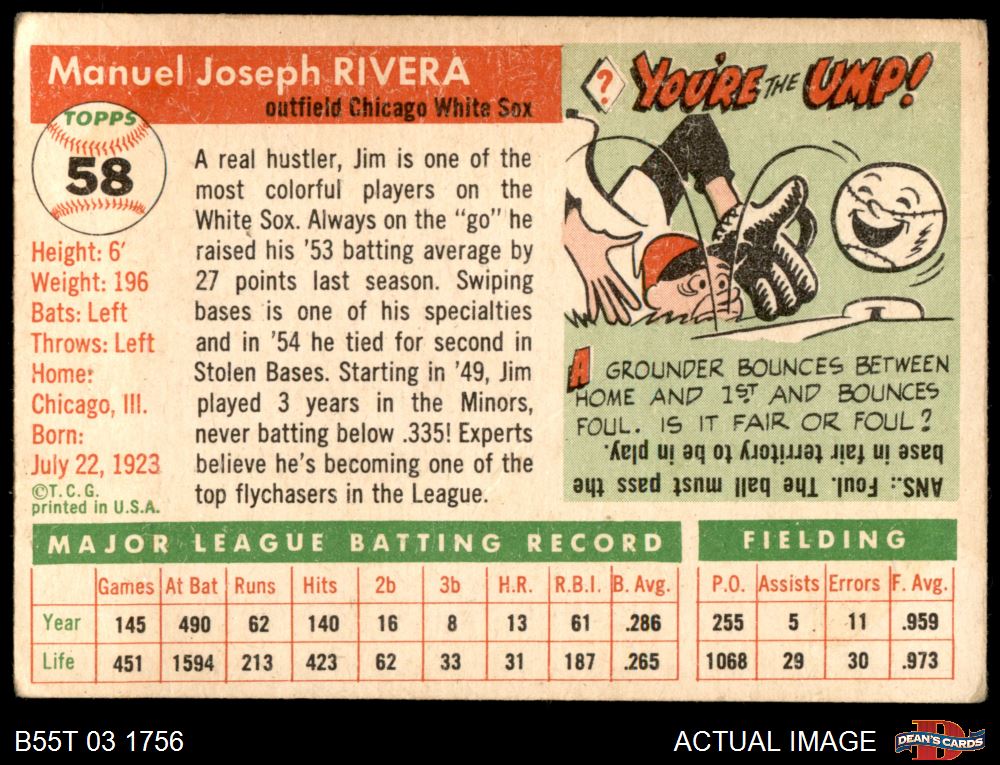 1955 Topps #58 Jim Rivera