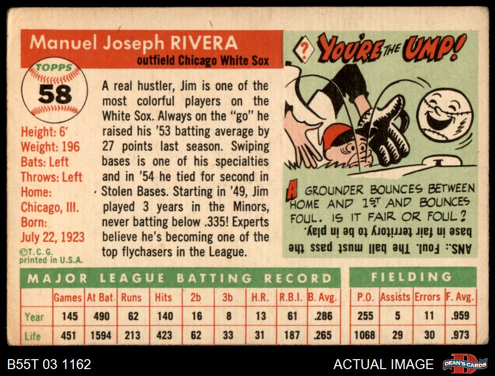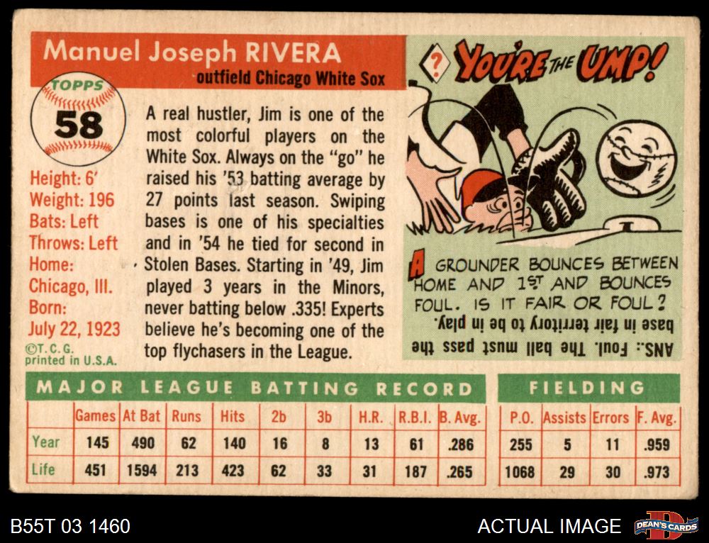 1955 Topps #58 Jim Rivera Front Thumbnail
