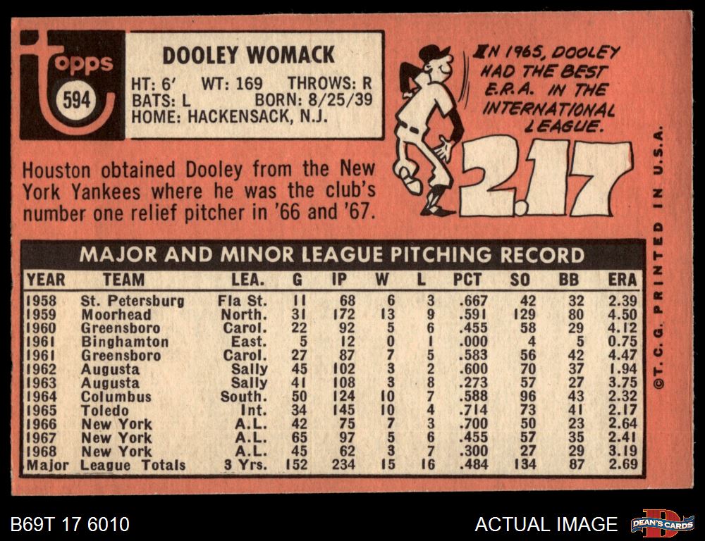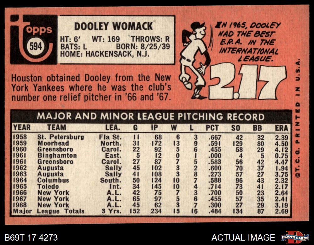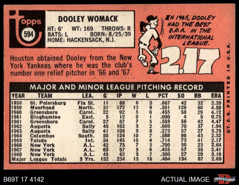 1969 Topps #594 Dooley Womack