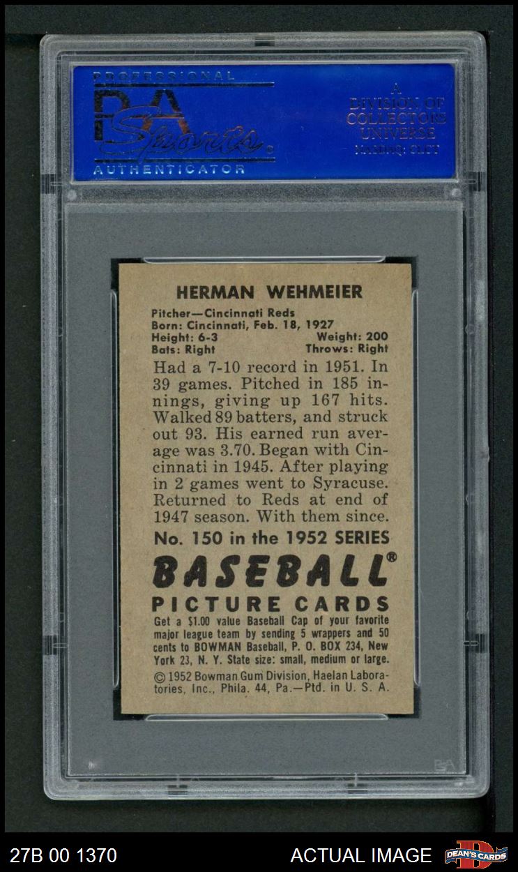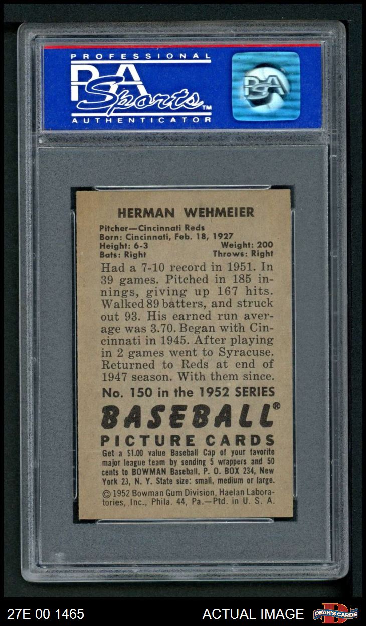 1952 Bowman #150 Herm Wehmeier PSA 8 - NM/MT