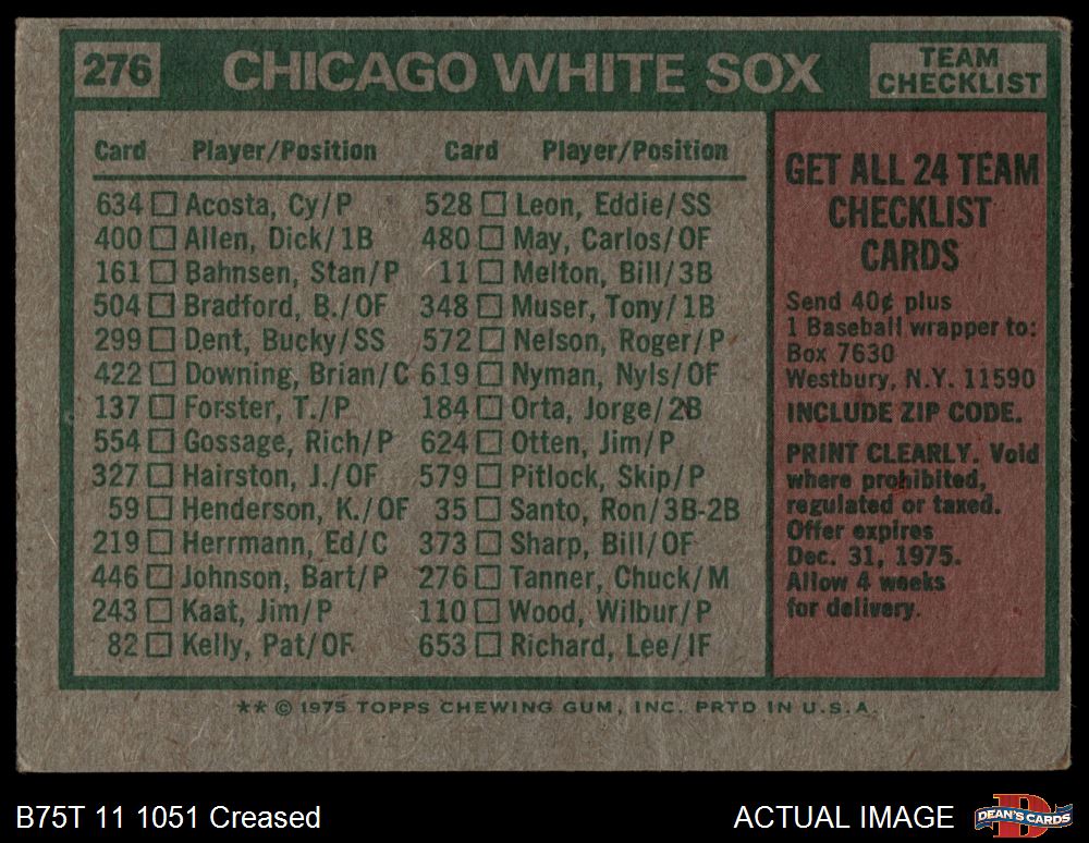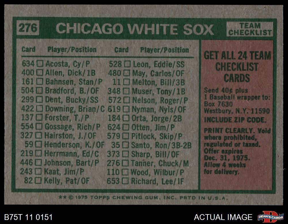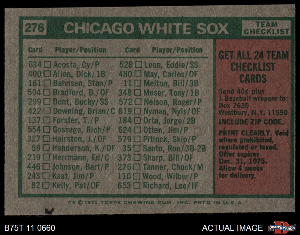 1975 Topps #276 White Sox Team Checklist