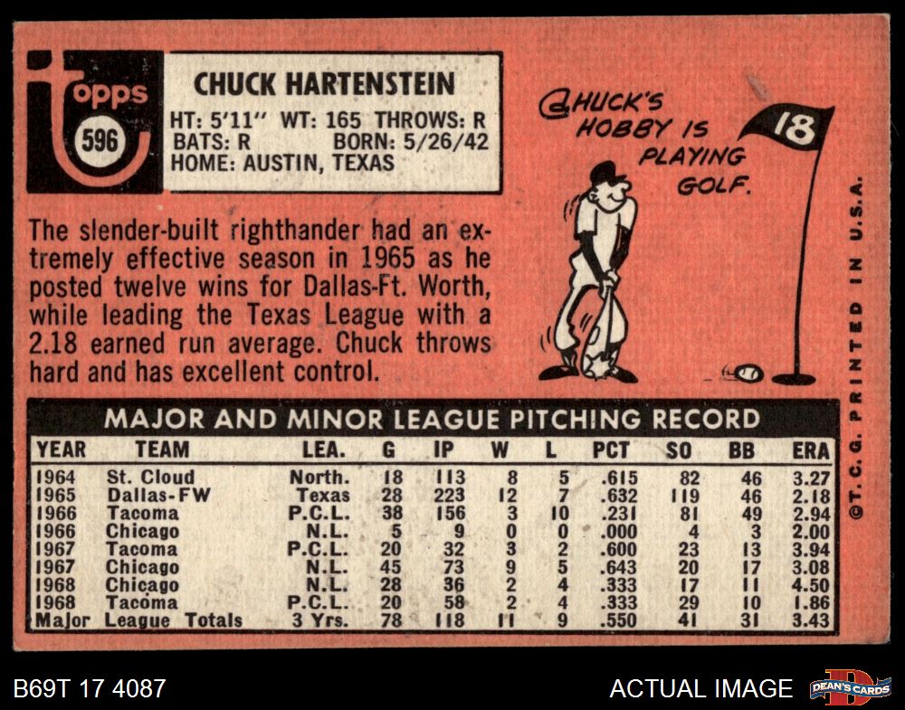 1969 Topps #596 Chuck Hartenstein 3 - VG