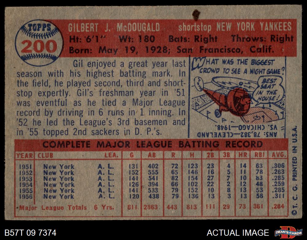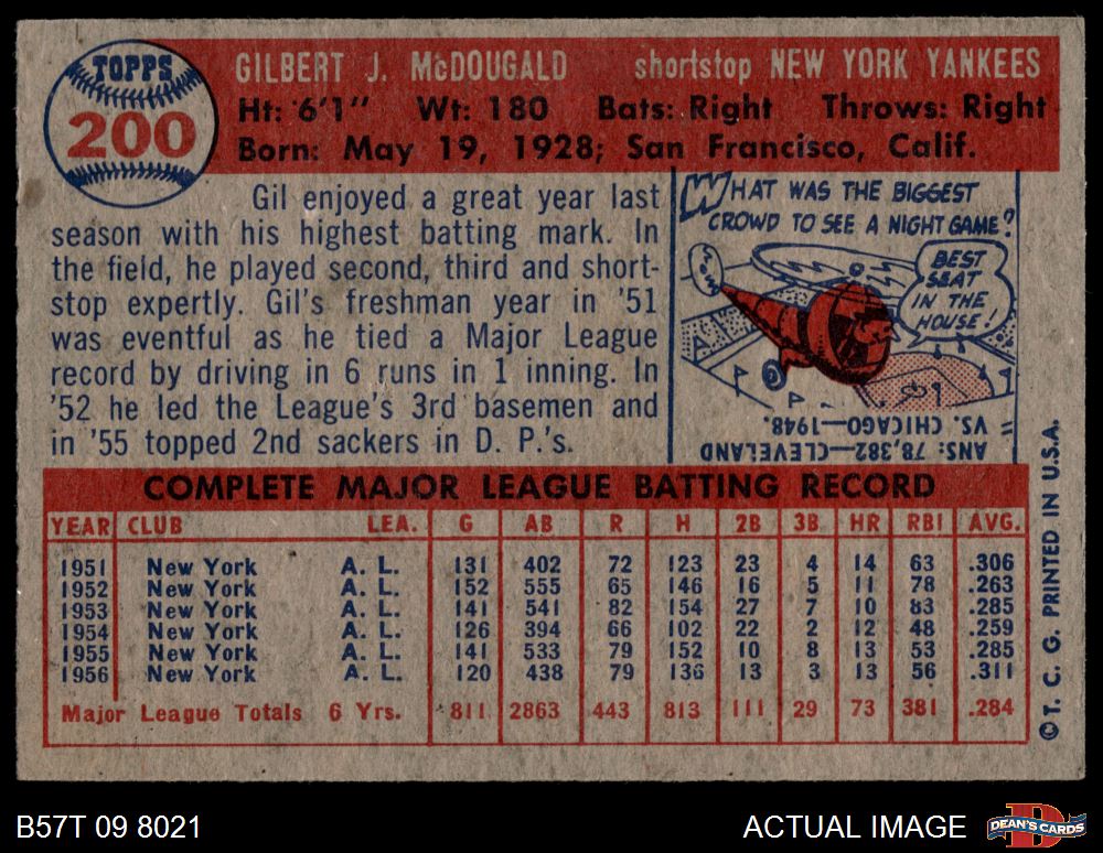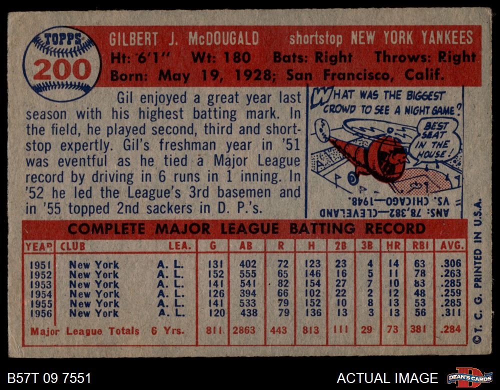 1957 Topps #200 Gil McDougald