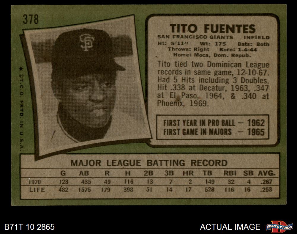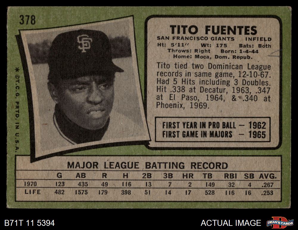 1971 Topps #378 Tito Fuentes 4.5 - VG/EX+