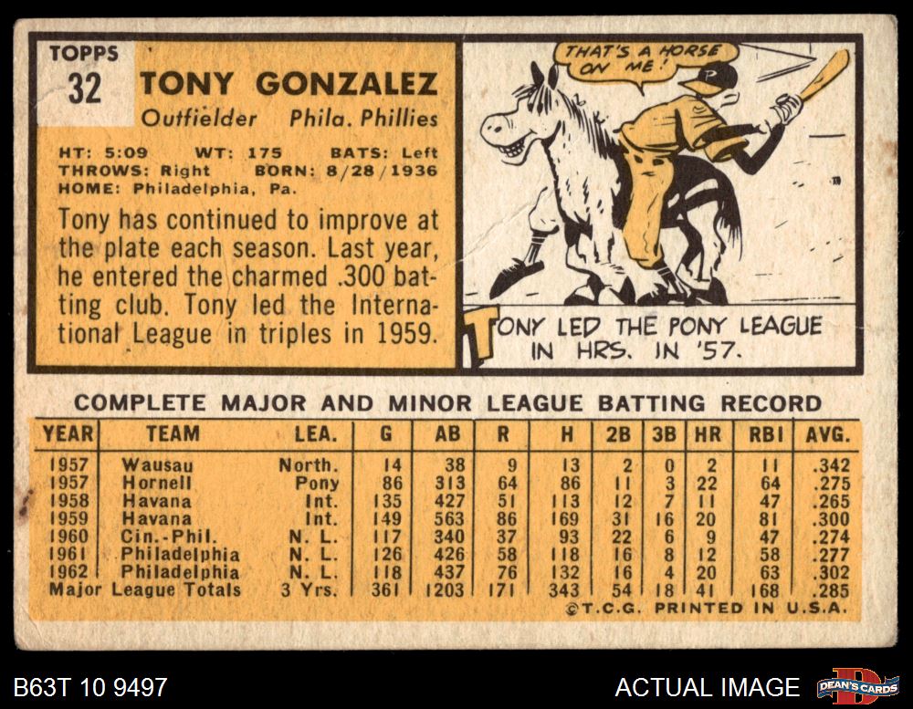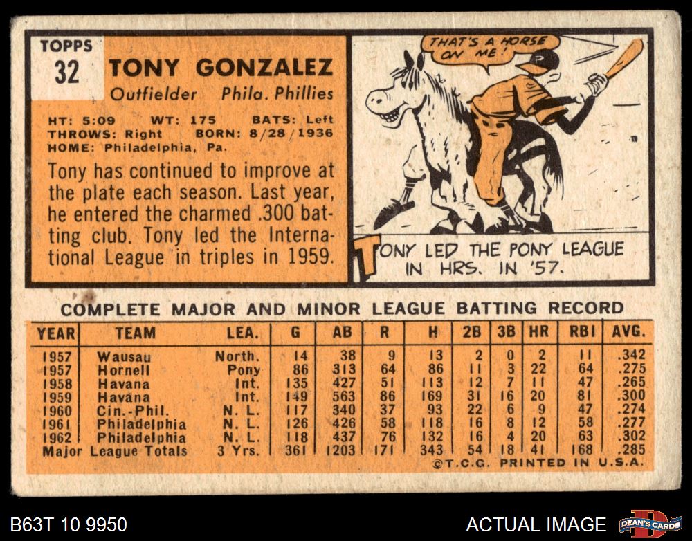 1963 Topps #32 Tony Gonzalez