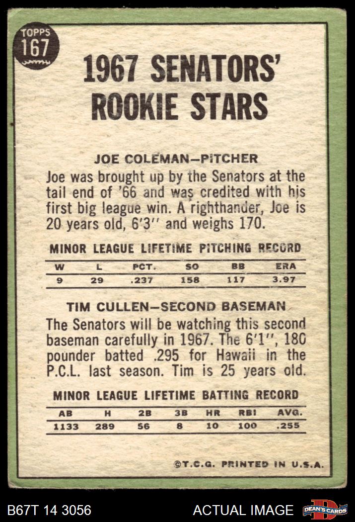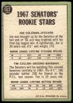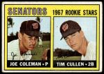 1967 Topps #167  -  Joe Coleman / Tim Cullen Senators Rookies Front Thumbnail