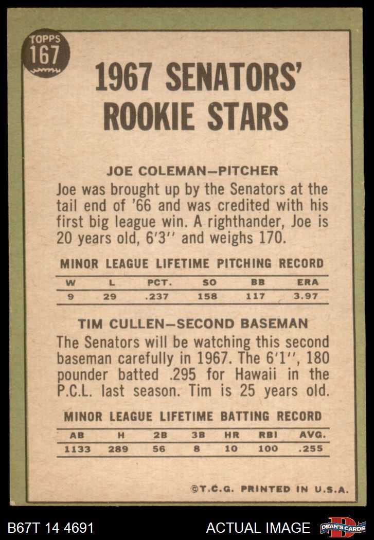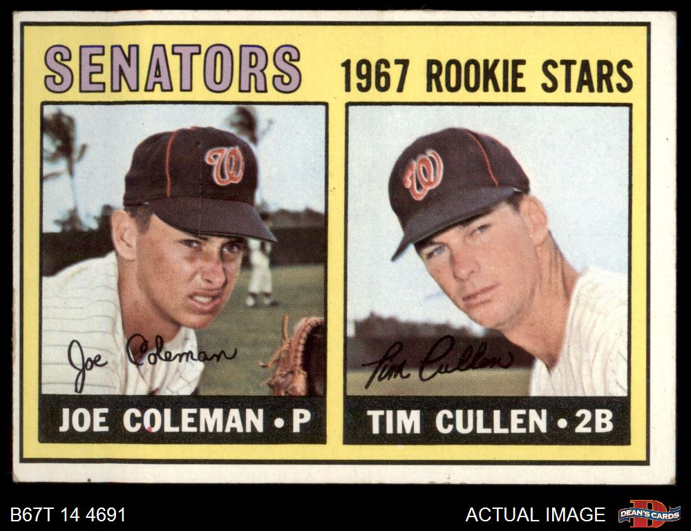 1967 Topps #167 - Joe Coleman / Tim Cullen Senators Rookies 3 - VG