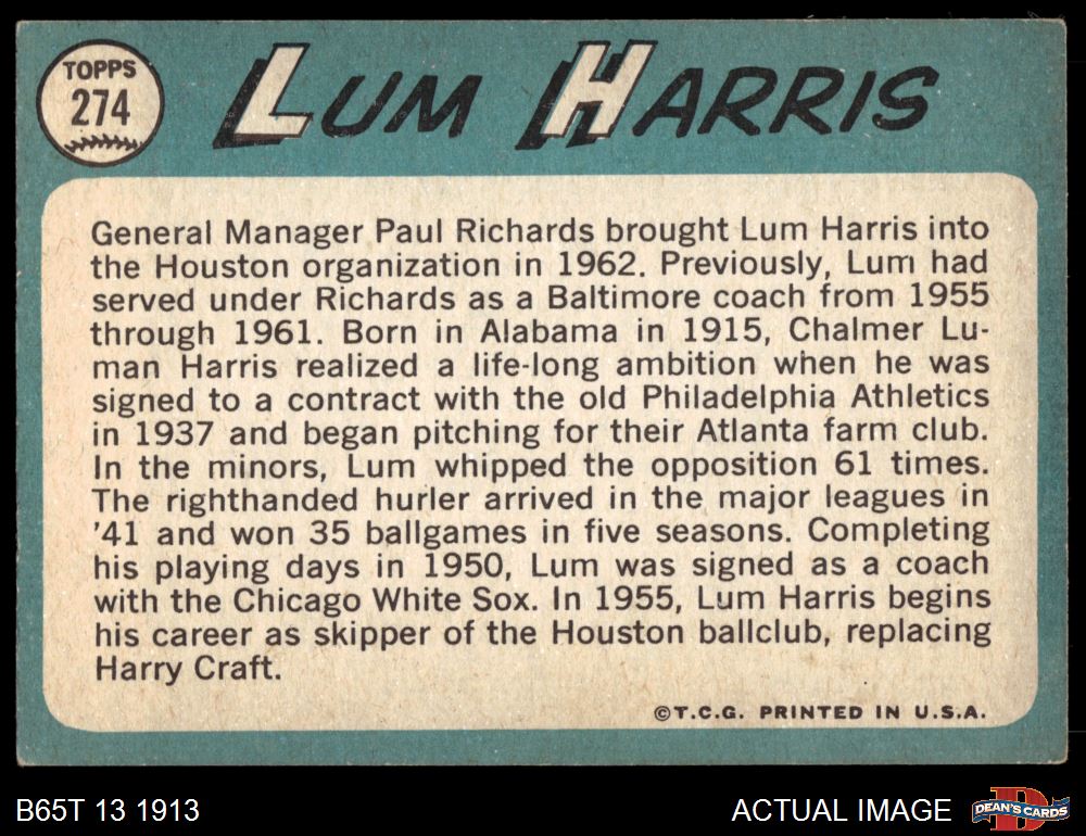 1965 Topps #274 Lum Harris