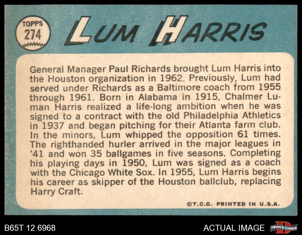 1965 Topps #274 Lum Harris 4 - VG/EX