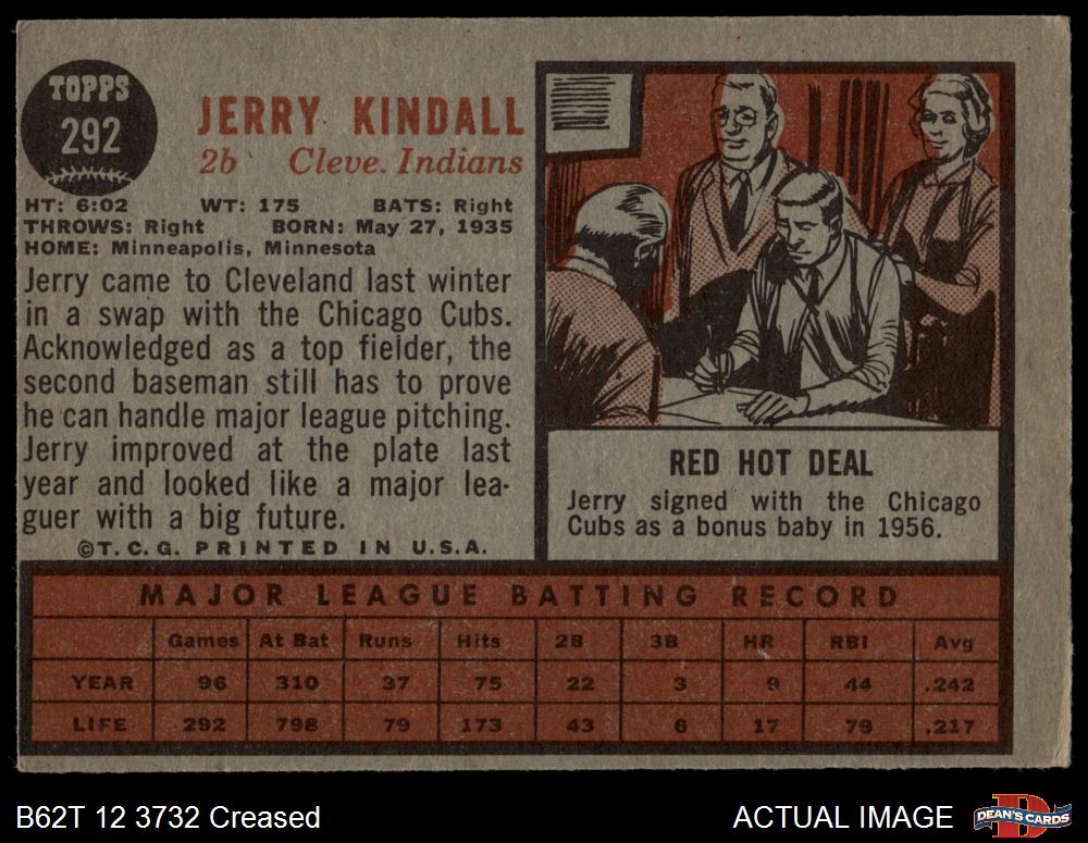1962 Topps #292 Jerry Kindall Front Thumbnail