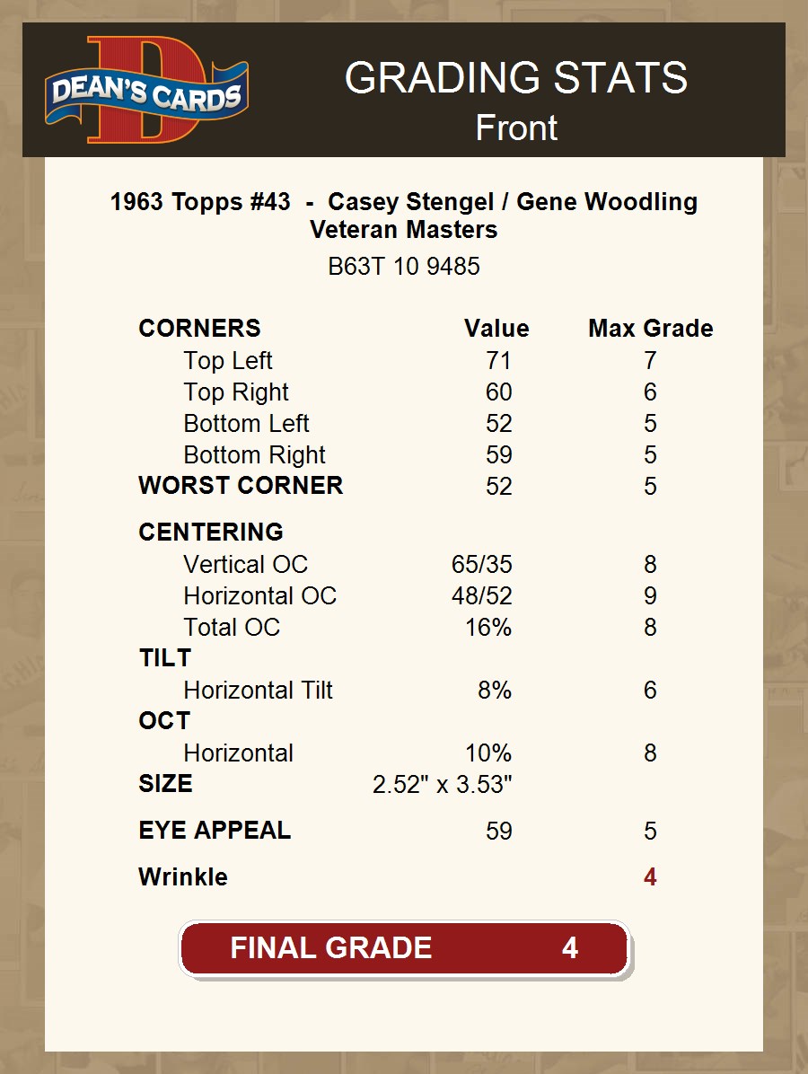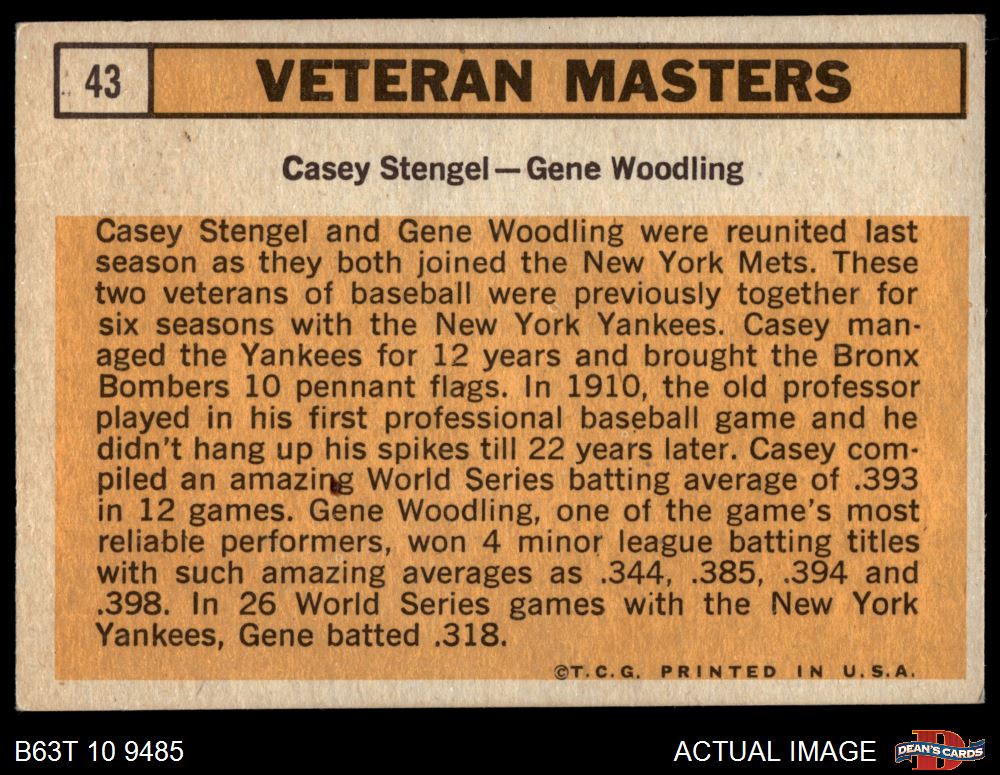 1963 Topps #43 - Casey Stengel / Gene Woodling Veteran Masters 4 - VG/EX