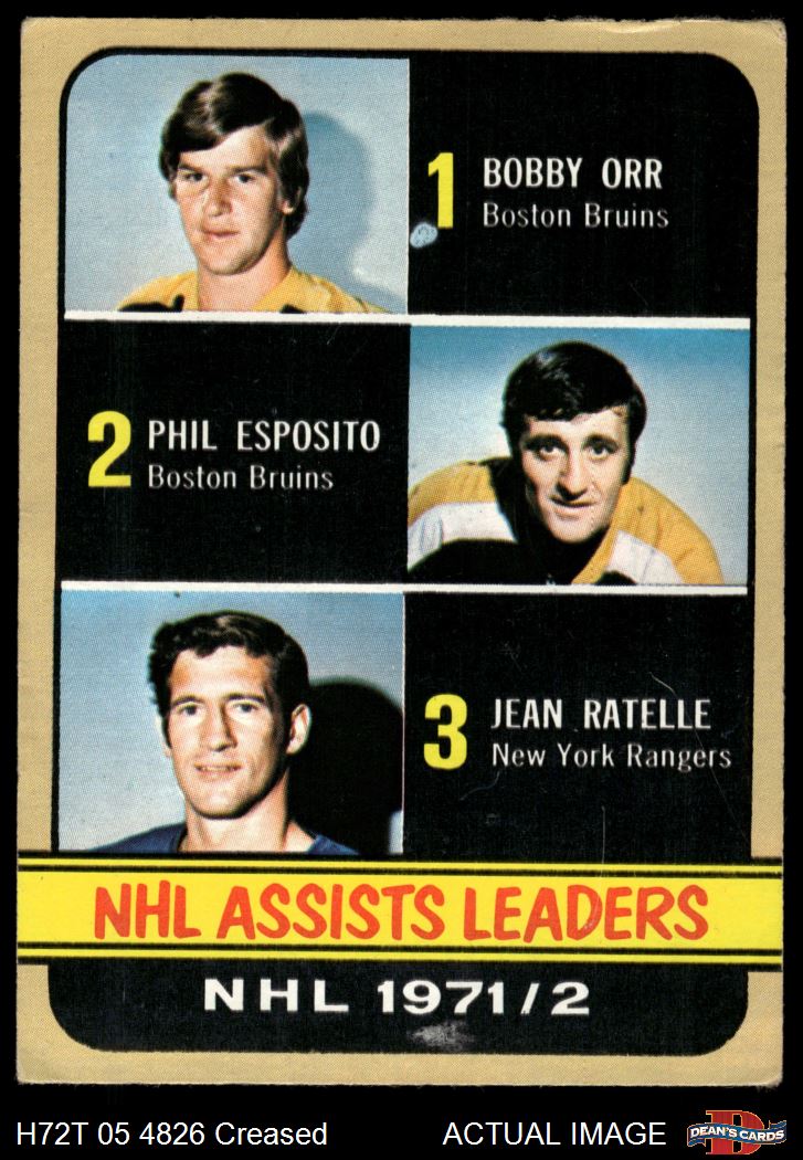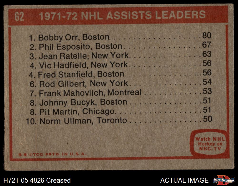 1972 Topps #62 - Bobby Orr / Phil Esposito / Jean Ratelle Assists Leaders 3 - VG