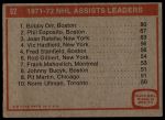 1972 Topps #62  -  Bobby Orr / Phil Esposito / Jean Ratelle Assists Leaders Front Thumbnail