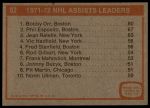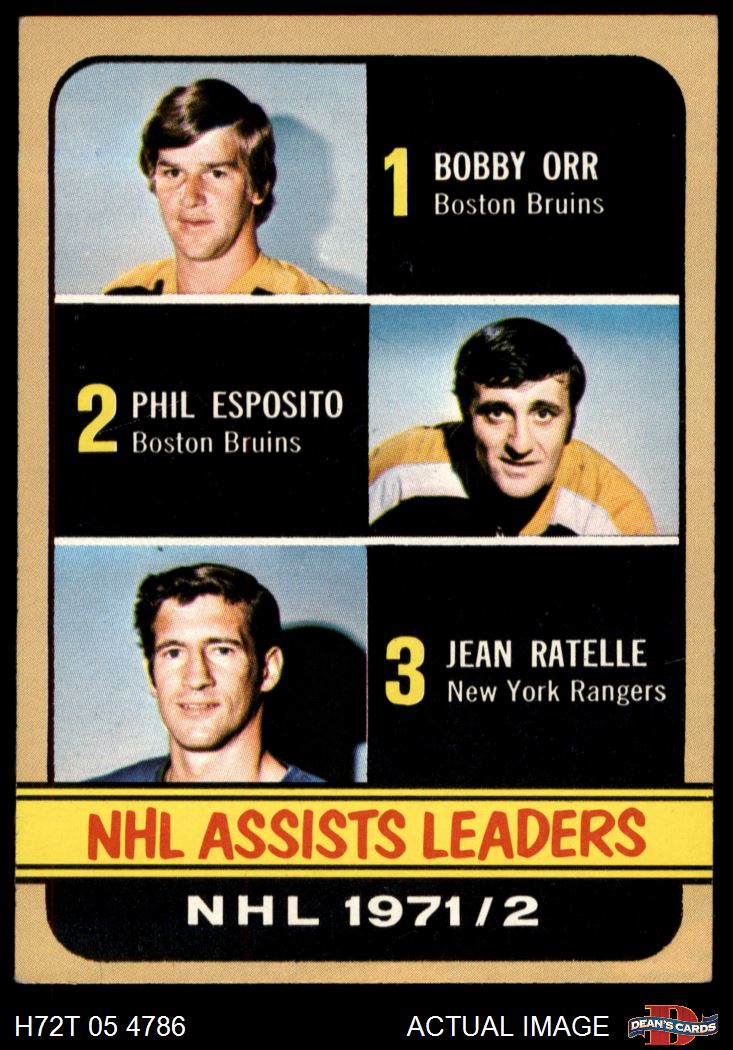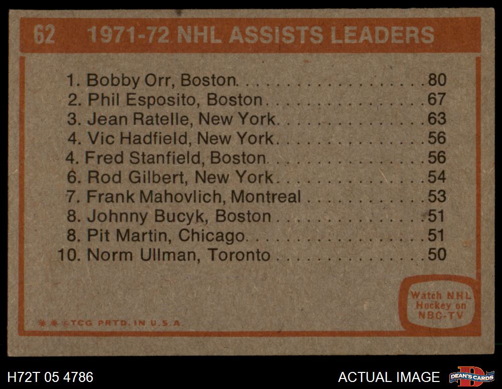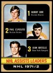 1972 Topps #62 - Bobby Orr / Phil Esposito / Jean Ratelle Assists Leaders 4 - VG/EX