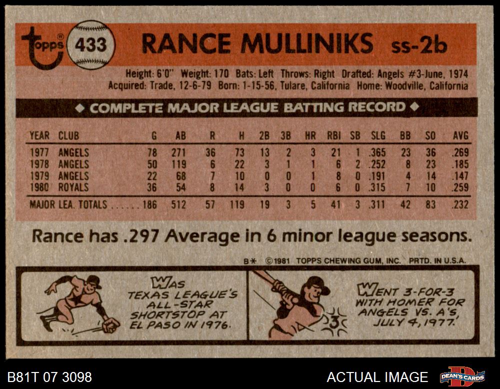 1981 Topps #433 Rance Mulliniks 7 - NM