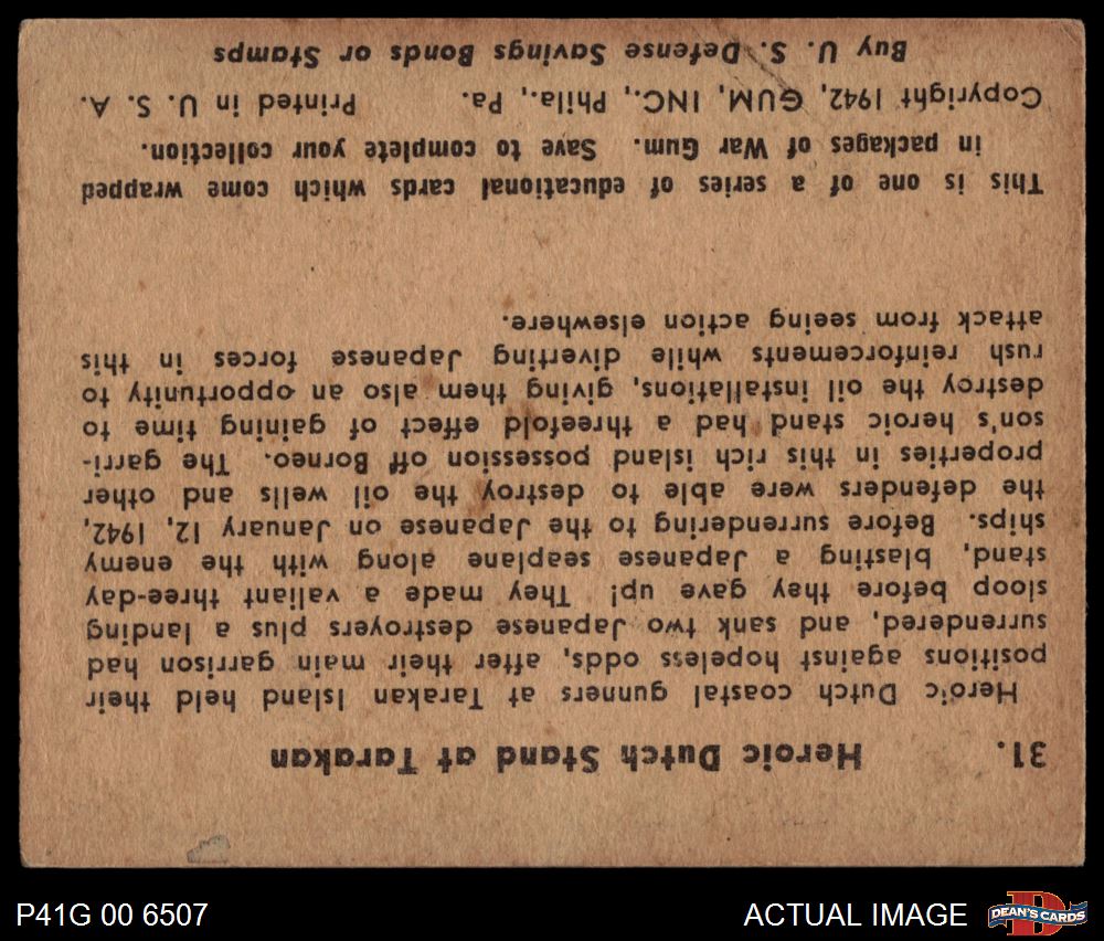 1941 War Gum #31 Heroic Dutch Stand At Tarakan 1.5 - FAIR