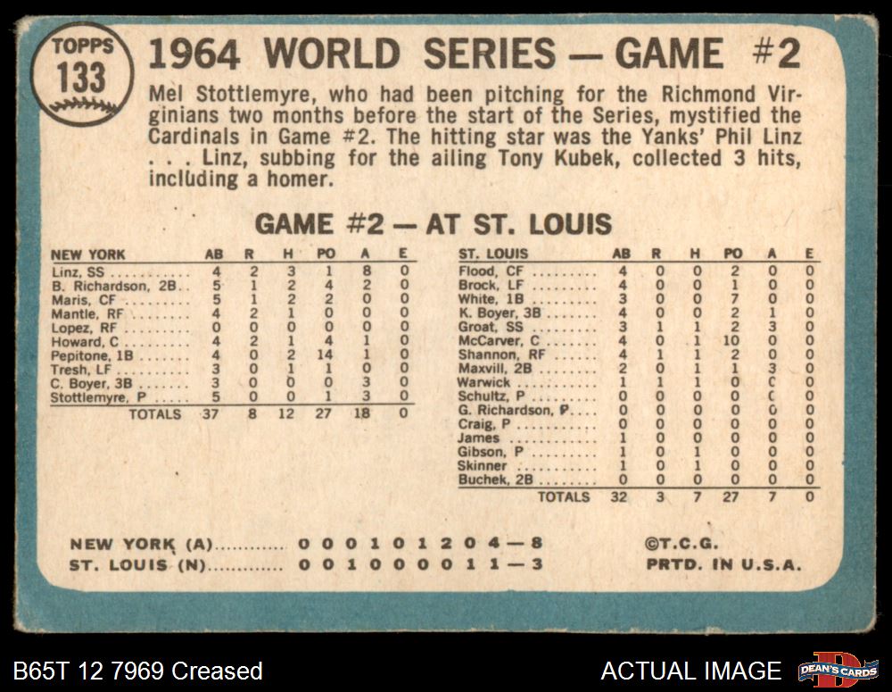 1965 Topps #133 - Mel Stottlemyre 1964 World Series - Game #2 - Stottlemyre Wins 1.5 - FAIR