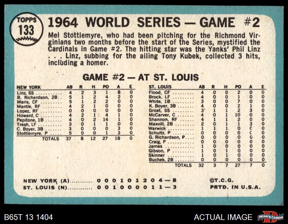 1965 Topps #133 1964 World Series - Game #2 - Stottlemyre Wins