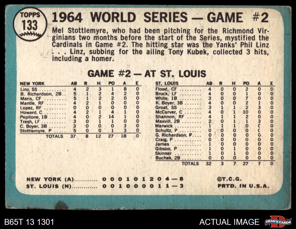 1965 Topps #133 - Mel Stottlemyre 1964 World Series - Game #2 - Stottlemyre Wins 2 - GOOD