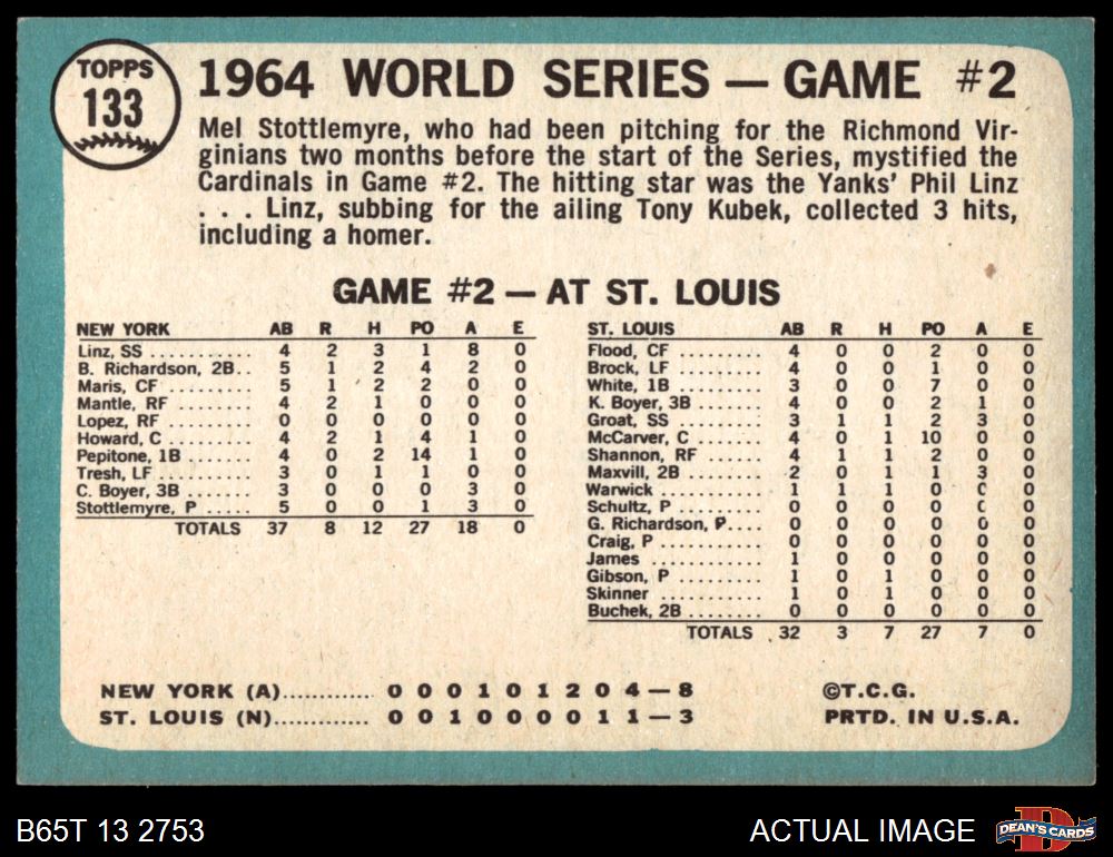 1965 Topps #133 - Mel Stottlemyre 1964 World Series - Game #2 - Stottlemyre Wins 7 - NM