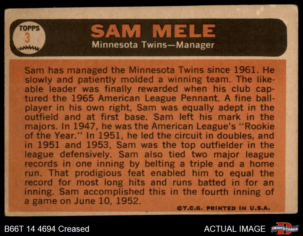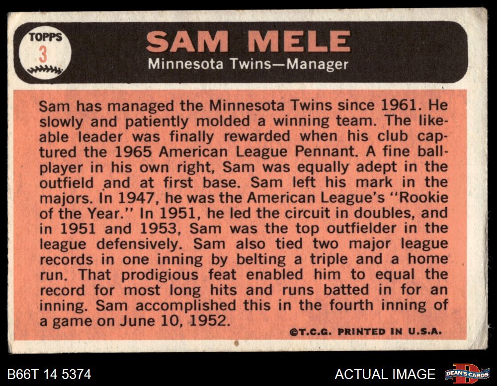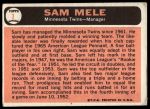 1966 Topps #3 Sam Mele Front Thumbnail